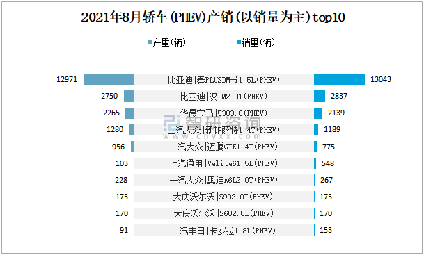 2021年8月轎車(PHEV)產銷(以銷量為主)top10