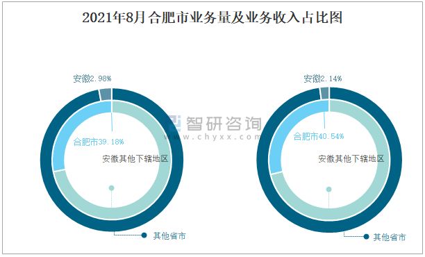 2021年8月合肥市業務量及業務收入占比圖