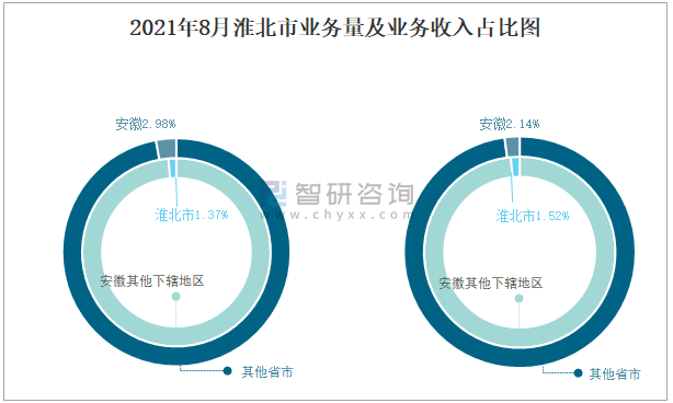 2021年8月淮北市業(yè)務量及業(yè)務收入占比圖