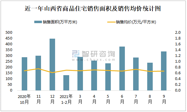 2021年9月山西省銷售商品住宅336.58萬平方米 銷售均價約為0.67萬元/平方米