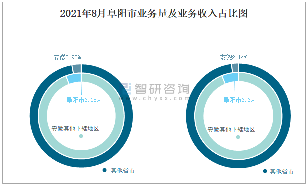 2021年8月阜陽市業務量及業務收入占比圖