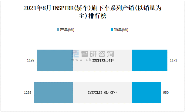 根據中國汽車工業協會數據統計可知:2021年8月INSPIRE(轎車)旗下共有2款轎車在銷售,其中INSPIRE1.5T相對暢銷;近一年INSPIRE1.5T共清倉庫存520輛,其產銷率存在一定幅度波動,2020年12月產銷率最高(148.9%),清倉庫存1861輛,2020年9月產銷率偏低(83.35%),積壓庫存1255輛;INSPIRE2.0L(HEV)作為一款新能源轎車,2021年8月銷量相較于同類型轎車(2021年8月共有6款新能源-HEV轎車在銷售),排名最后。