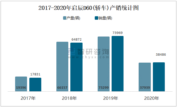 2017-2020年啟辰D60(轎車)產銷統計圖