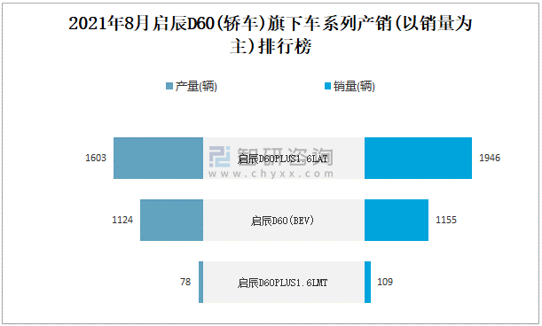 2021年8月啟辰D60(轎車)旗下車系列產銷(以銷量為主)排行榜