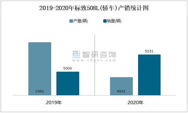 2019-2020年標致508L(轎車)產銷統計圖