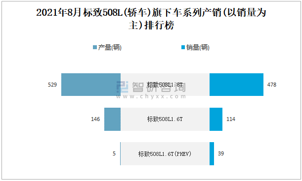 2021年8月標致508L(轎車)旗下車系列產銷(以銷量為主)排行榜