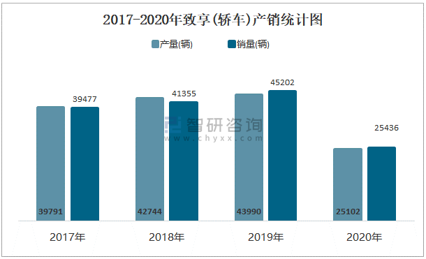 2017-2020年致享(轎車)產(chǎn)銷統(tǒng)計(jì)圖