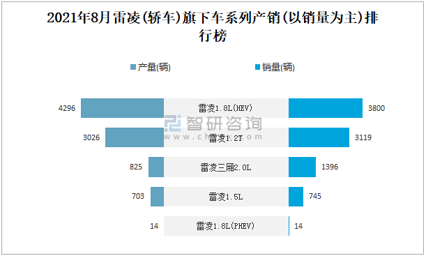 2021年8月雷凌(轎車)旗下車系列產銷(以銷量為主)排行榜