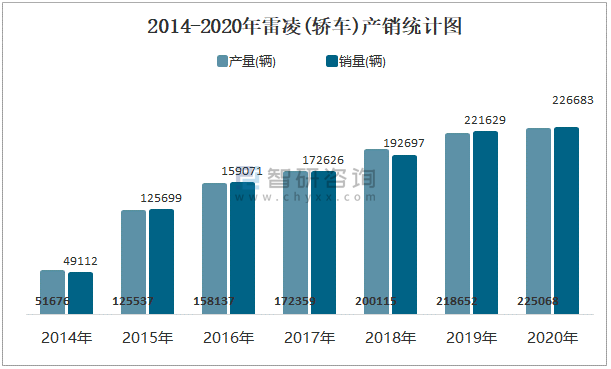 2014-2020年雷凌(轎車)產銷統計圖