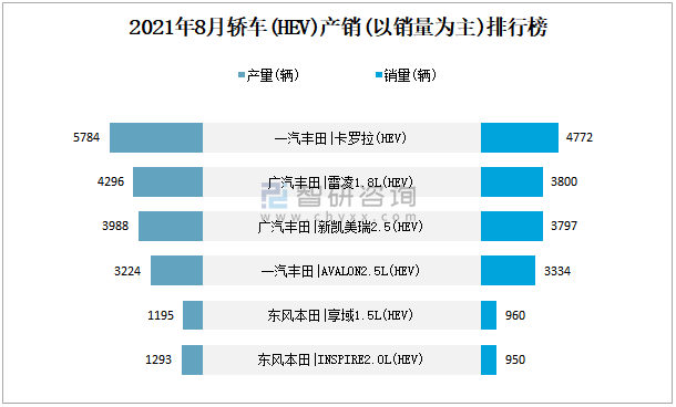 2021年8月轎車(HEV)產銷(以銷量為主)排行榜