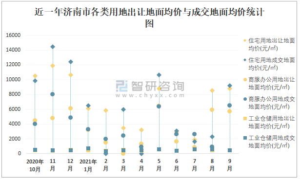 2021年1-9月濟南市各類用地土地成交情況統(tǒng)計表