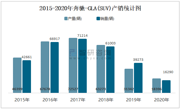 2015-2020年奔馳-GLA(SUV)產銷統計圖