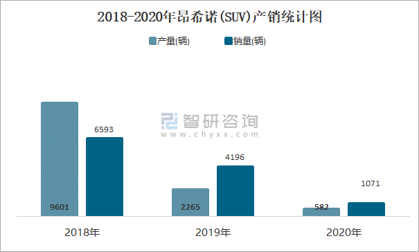 2018-2020年昂希諾(SUV)產銷統計圖