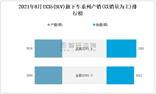 2021年8月IX35旗下車系列產銷(以銷量為主)排行榜