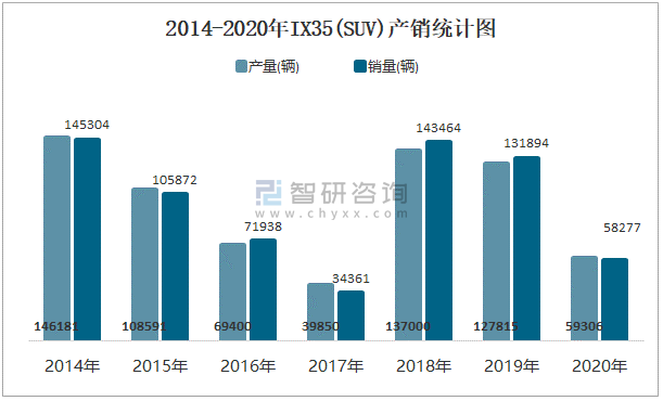 2014-2020年IX35(SUV)產銷統計圖