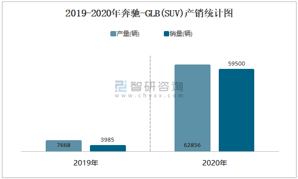 2019-2020年奔馳-GLB(SUV)產銷統計圖