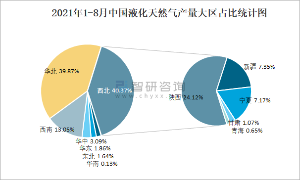 2021年1-8月中國原油加工量產(chǎn)量大區(qū)占比統(tǒng)計(jì)圖