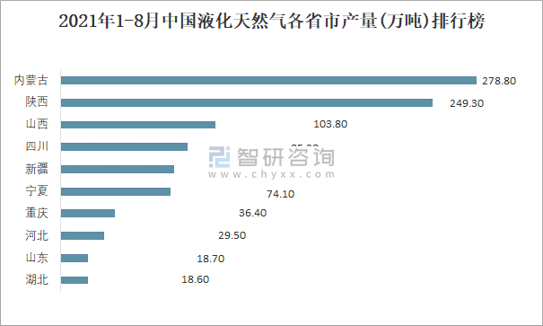 2021年1-8月中國原油加工量各省市每月產(chǎn)量排行榜