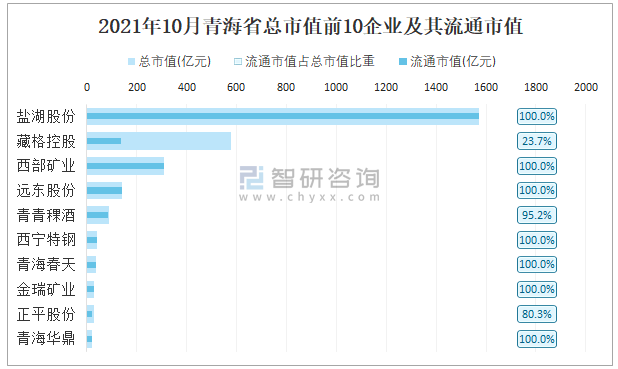 2021年10月青海省總市值前10企業及其流通市值