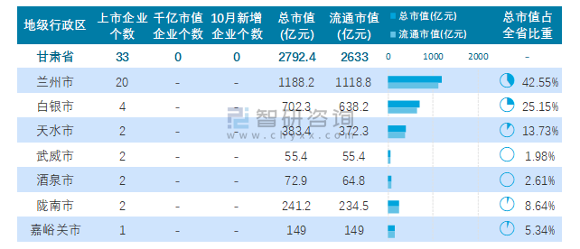 2021年10月甘肅省33家A股上市企業總市值2792.4億元,蘭州市上市企業最多