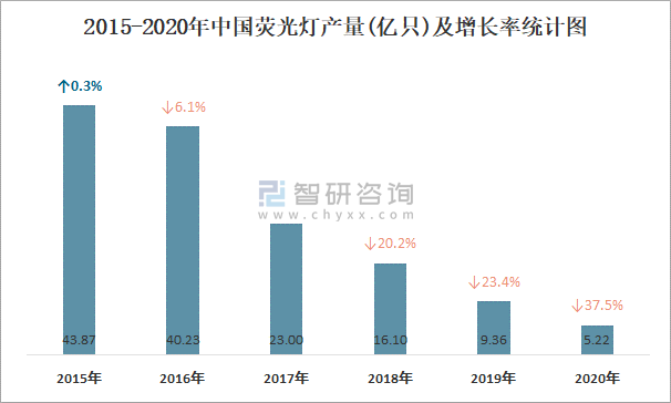 2015-2020年中國熒光燈產(chǎn)量及增長率統(tǒng)計圖