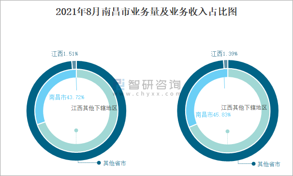 2021年8月南昌市業(yè)務量及業(yè)務收入占比圖