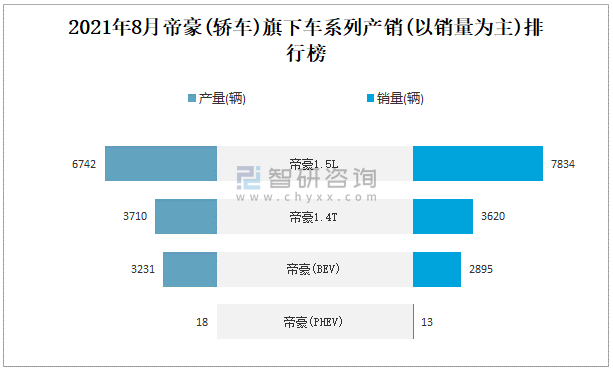 2021年8月帝豪(轎車)旗下車系列產銷(以銷量為主)排行榜