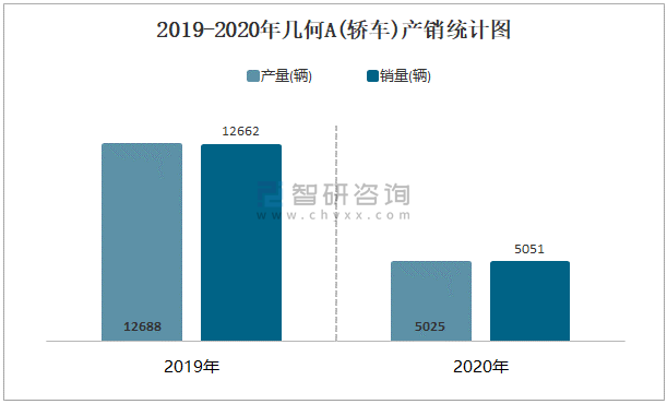 2019-2020年幾何A(轎車)產(chǎn)銷統(tǒng)計圖