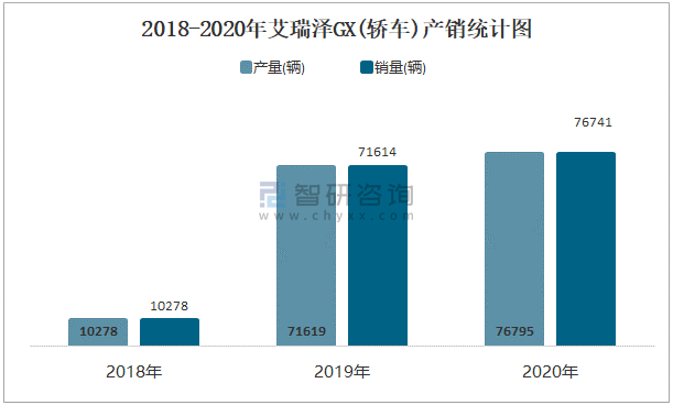 2018-2020年艾瑞澤GX(轎車)產銷統計圖