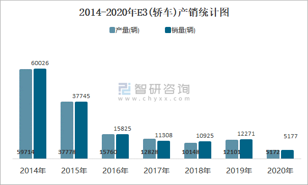 2014-2020年E3(轎車)產銷統計圖