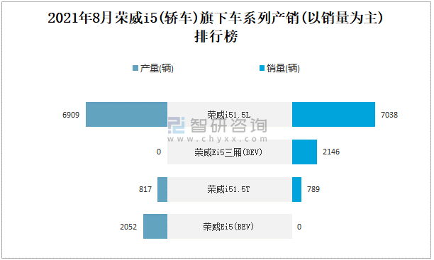 2021年8月榮威I5(轎車)旗下車系列產銷(以銷量為主)排行榜