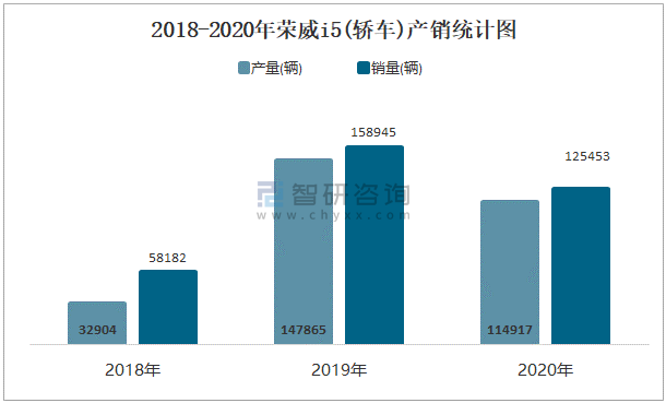 2018-2020年榮威I5(轎車)產銷統計圖
