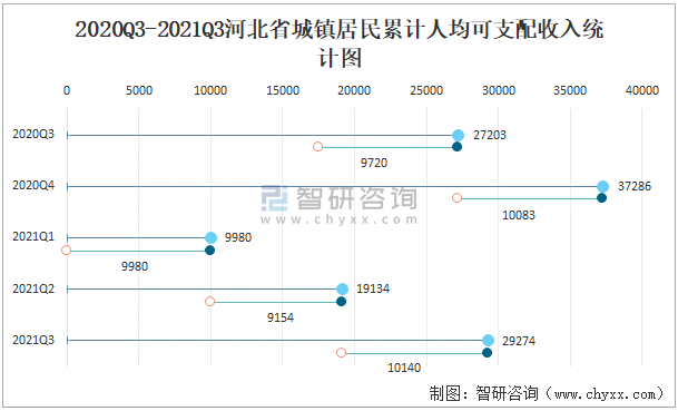 2020Q3-2021Q3河北省城鎮(zhèn)居民累計人均可支配收入統(tǒng)計圖