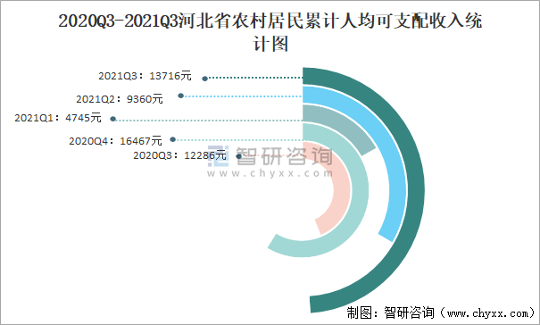 2020Q3-2021Q3河北省農(nóng)村居民累計人均可支配收入統(tǒng)計圖