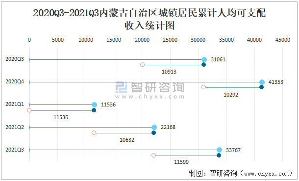 2020Q3-2021Q3內(nèi)蒙古自治區(qū)城鎮(zhèn)居民累計(jì)人均可支配收入統(tǒng)計(jì)圖
