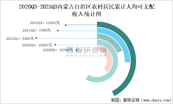 2020Q3-2021Q3內(nèi)蒙古自治區(qū)農(nóng)村居民累計(jì)人均可支配收入統(tǒng)計(jì)圖