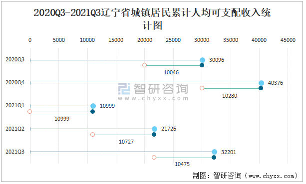 2020Q3-2021Q3遼寧省城鎮居民累計人均可支配收入統計圖