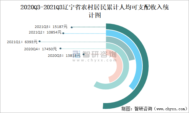 2020Q3-2021Q3遼寧省農村居民累計人均可支配收入統計圖