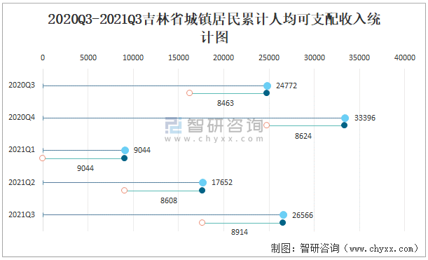 2020Q3-2021Q3吉林省城鎮(zhèn)居民累計人均可支配收入統(tǒng)計圖