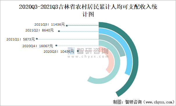 2020Q3-2021Q3吉林省農(nóng)村居民累計人均可支配收入統(tǒng)計圖