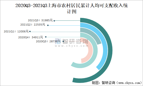 2020Q3-2021Q3上海市農村居民累計人均可支配收入統計圖
