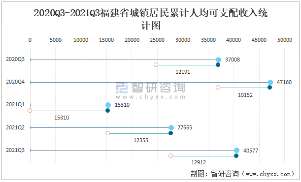 2020Q3-2021Q3福建省城鎮(zhèn)居民累計(jì)人均可支配收入統(tǒng)計(jì)圖