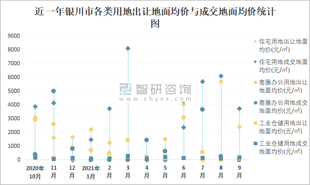 2021年1-9月銀川市各類用地土地成交情況統(tǒng)計表