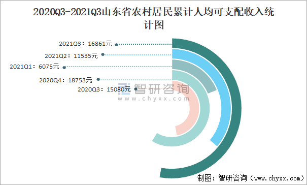 2020Q3-2021Q3山東省農村居民累計人均可支配收入統計圖