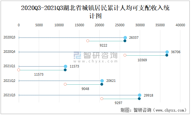 2020Q3-2021Q3湖北省城鎮(zhèn)居民累計(jì)人均可支配收入統(tǒng)計(jì)圖