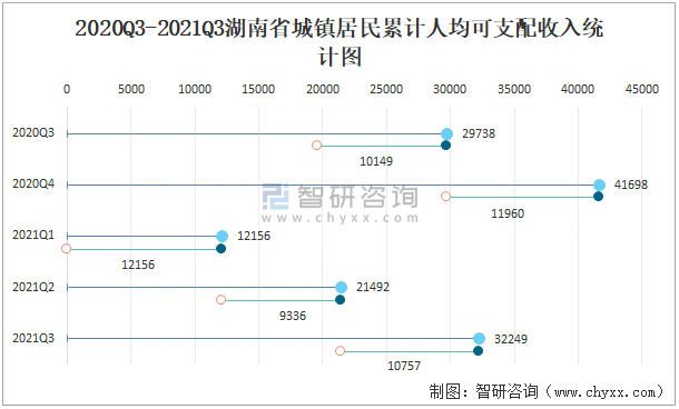 2020Q3-2021Q3湖南省城鎮居民累計人均可支配收入統計圖
