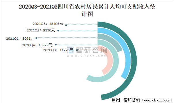 2020Q3-2021Q3四川省農(nóng)村居民累計人均可支配收入統(tǒng)計圖