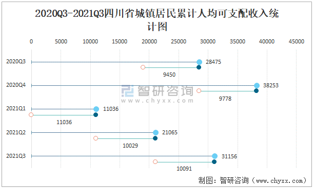 2020Q3-2021Q3四川省城鎮(zhèn)居民累計人均可支配收入統(tǒng)計圖