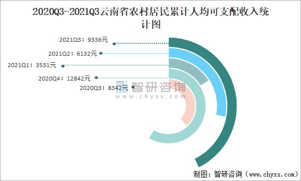 2020Q3-2021Q3云南省農村居民累計人均可支配收入統計圖