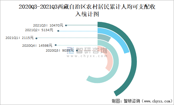 2020Q3-2021Q3西藏自治區(qū)農(nóng)村居民累計人均可支配收入統(tǒng)計圖